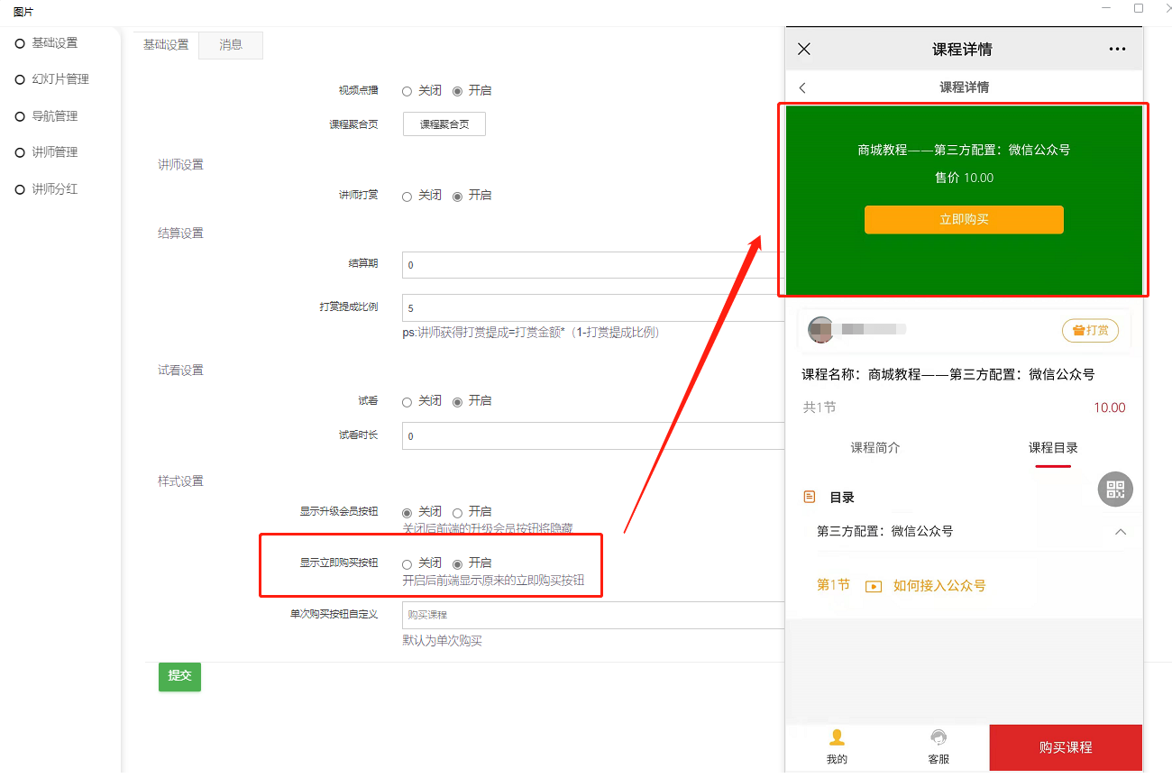 3、开启讲师打赏【基础设置开启打赏、课程商品开启打赏,前端才可以打赏】